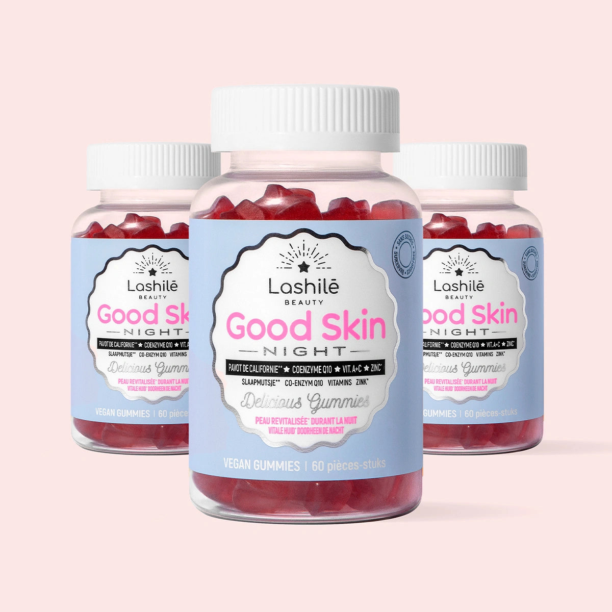 •Good Skin Night è una nuova formula unica a doppia azione: migliora la qualità del sonno e promuove la rigenerazione della pelle.
